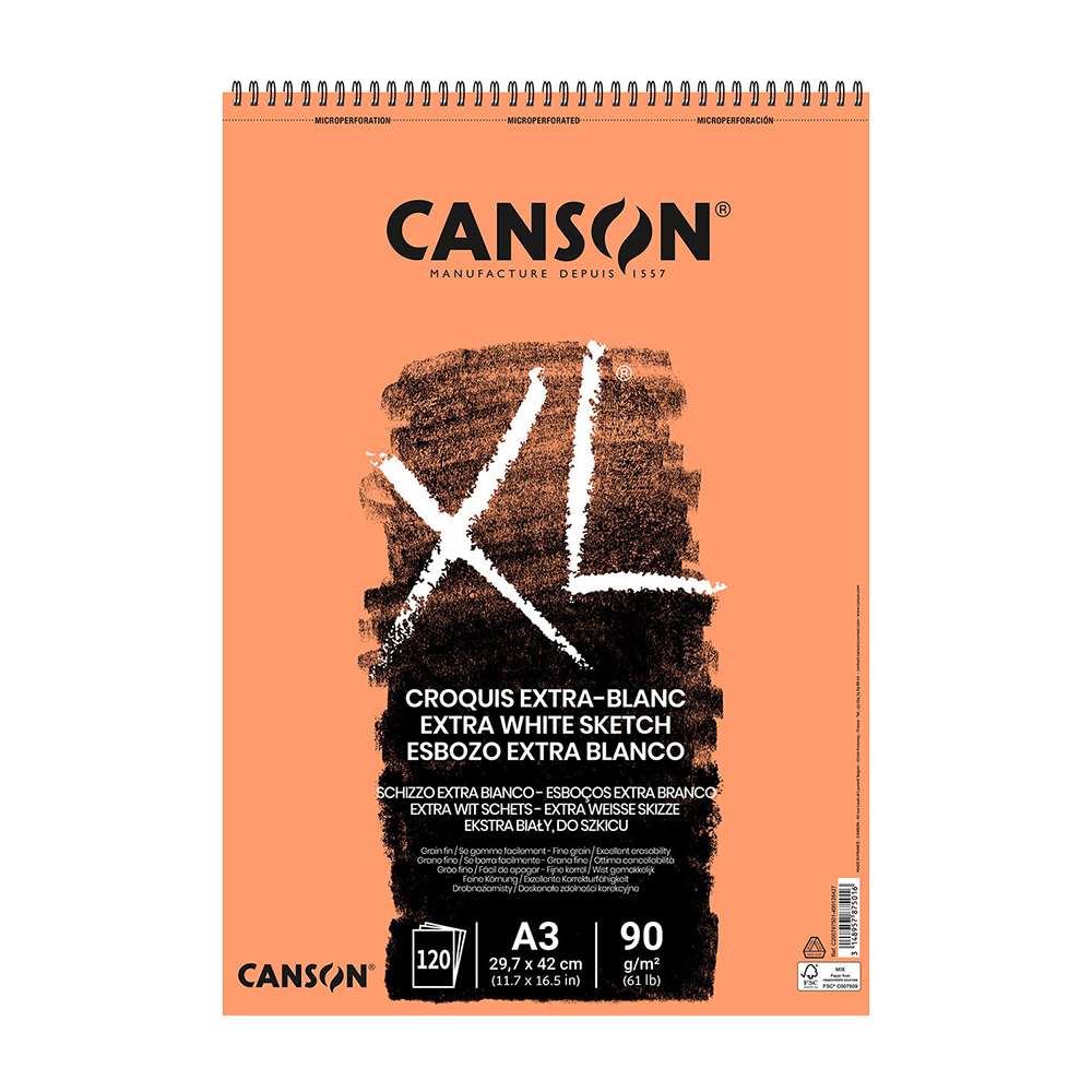 Canson XL Extra White Spiral Pad A3 (90gsm) contains smooth, ultra-white acid-free paper ideal for sketching, design, and everyday art projects. Its extra-white tone enhances contrast and clarity.