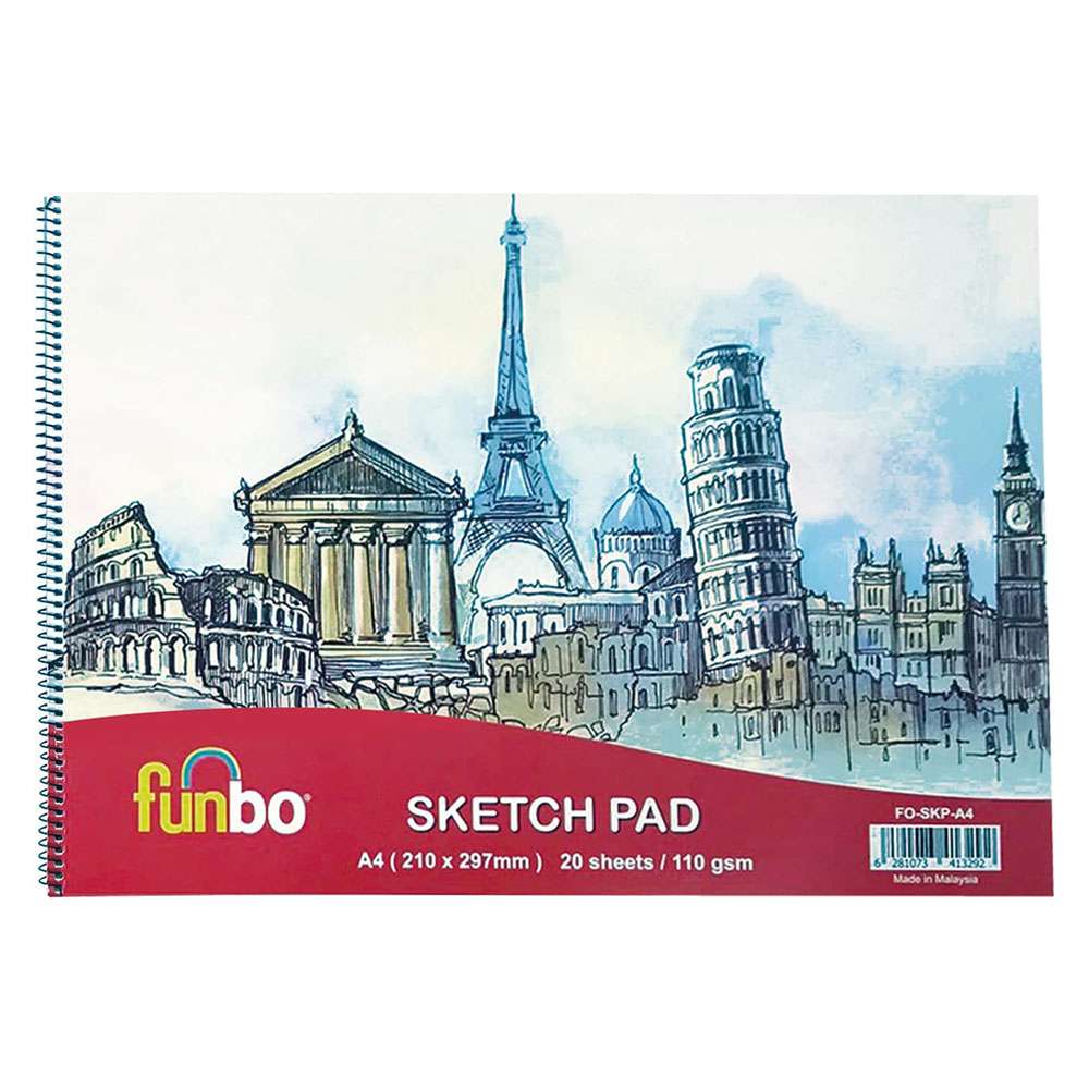 Funbo Sketch Pad, 110gsm, A4 Size, Perfect for Drawing – Pack of 20 Sheets