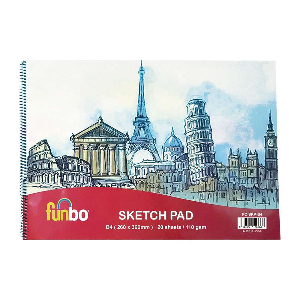 Funbo Sketch Pad, 110gsm, B4 Size, Ideal for Detailed Sketches – Pack of 20 Sheets