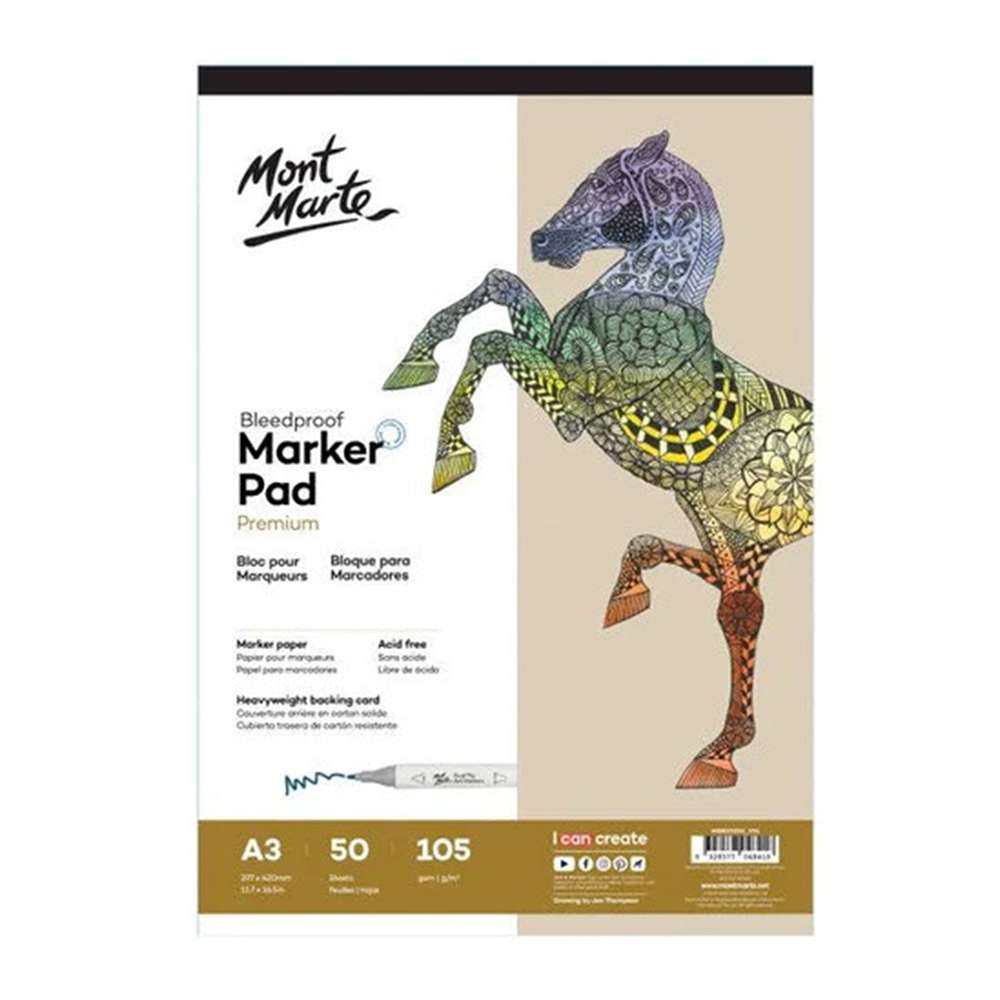 Mont Marte Bleedproof Marker Pad, A3, 105gsm, 50 Sheets