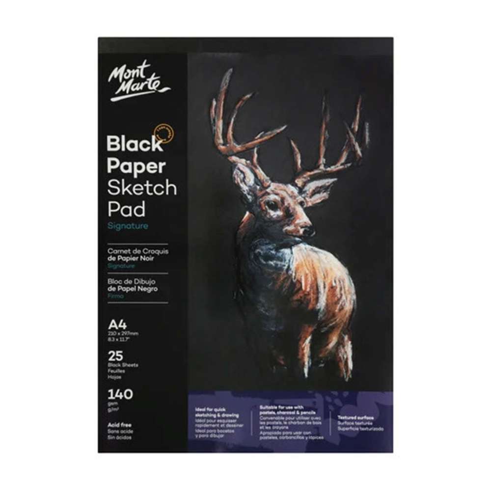 Mont Marte Sketch Pad Black, A4, 140gsm, 25 Sheets