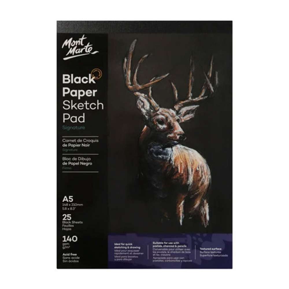Mont Marte Sketch Pad Black, A5, 140gsm, 25 Sheets