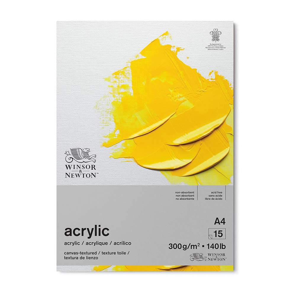 Winsor & Newton Acrylic Pad, A4, 300 gsm, Canvas Texture, Acid-Free, Ideal for Drawing & Painting - 15 Sheets