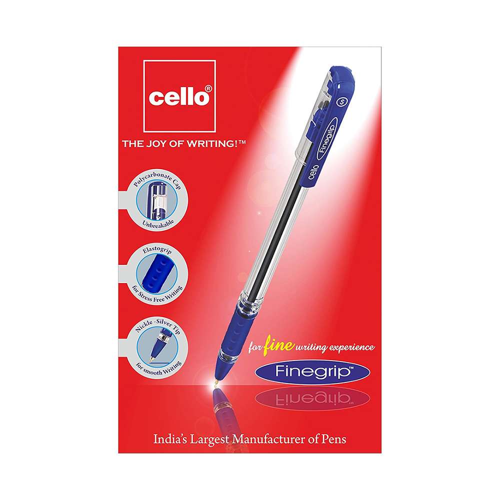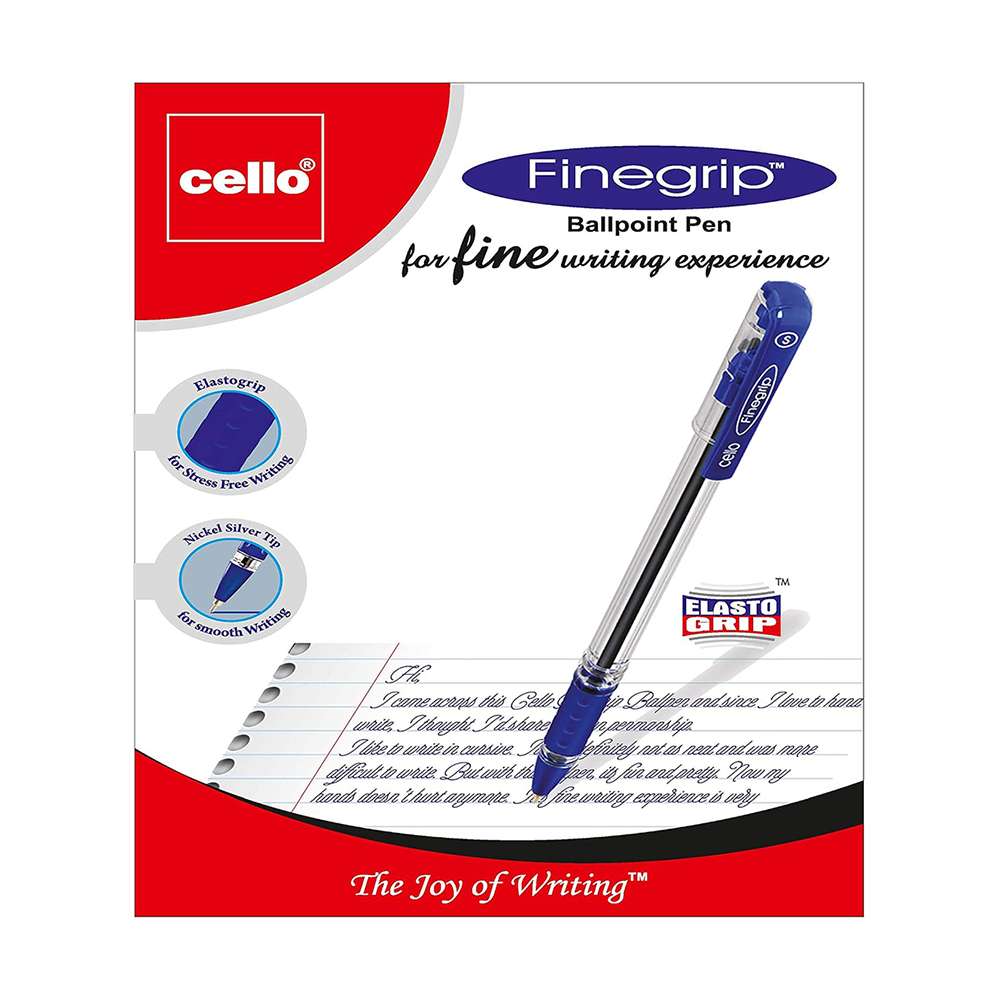 Cello provides fine-tip everyday pens for office, school, and home. The focus is on a 0.7mm Swiss metal tip, elasto grip, and smooth ink, helping users write neatly for longer. Model CE-FGRIP7-12B offers 12 blue pens for consistent, pressure-free writing sessions.