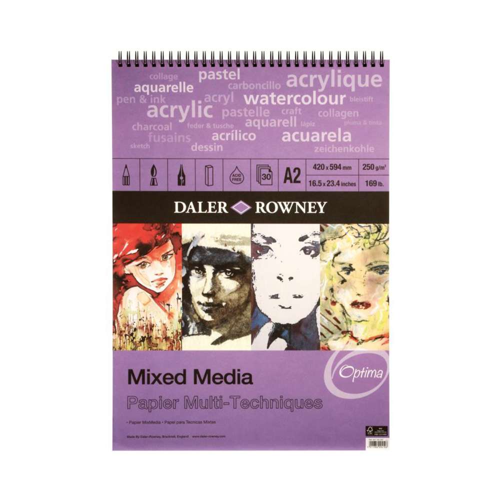 Daler Rowney Mixed Media Spiral Pad A2 (250gsm) is a premium, acid-free pad ideal for combining wet and dry techniques. It’s perfect for acrylic, ink, graphite, and watercolour projects.