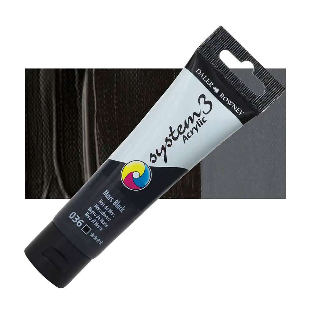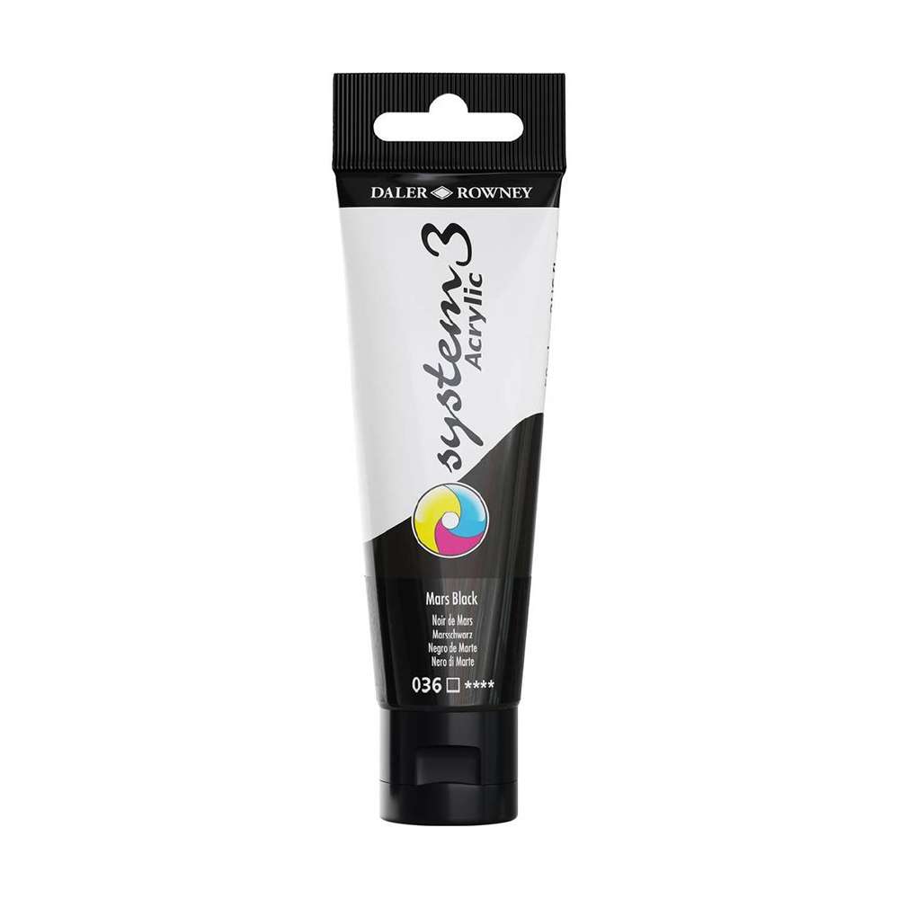 The Daler Rowney System 3 Acrylic Mars Black 59ml (Model: DAL129059036) features a deep, matte black pigment that provides exceptional coverage and a professional finish.