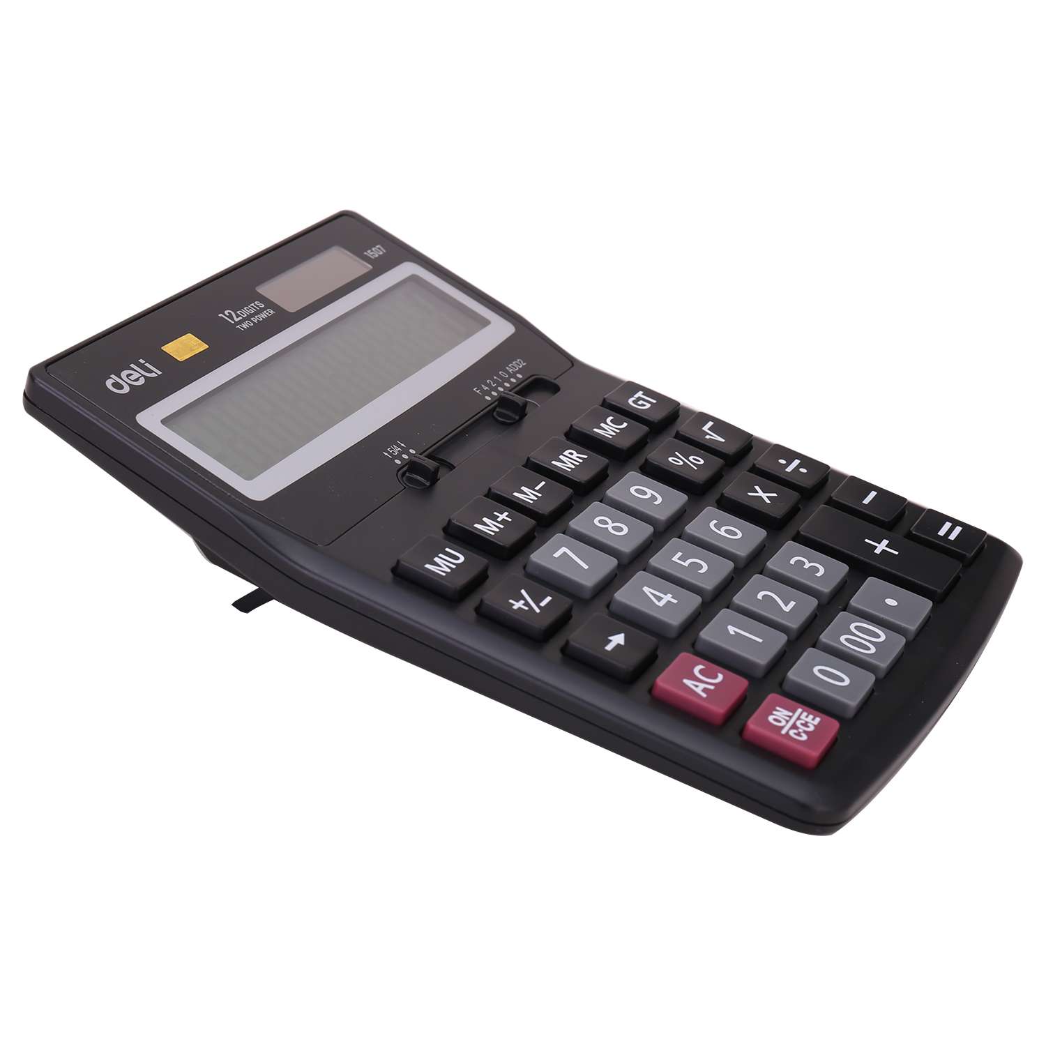Deli provides dependable desktop calculators for office, school, and home. Built for everyday accuracy, model E1507 pairs dual power with a clear 12-digit screen and responsive keys. The angled display improves readability, while a lightweight plastic body suits busy desks and shared counters.
