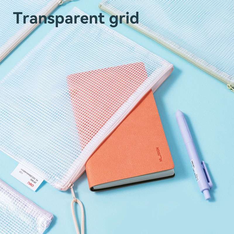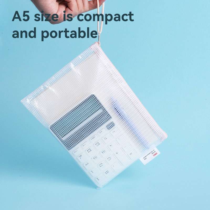 Deli provides compact PVC zip bags for organizing smaller documents. The EF281 model includes A5 format with assorted finishes, ensuring safety and easy handling of papers and accessories.