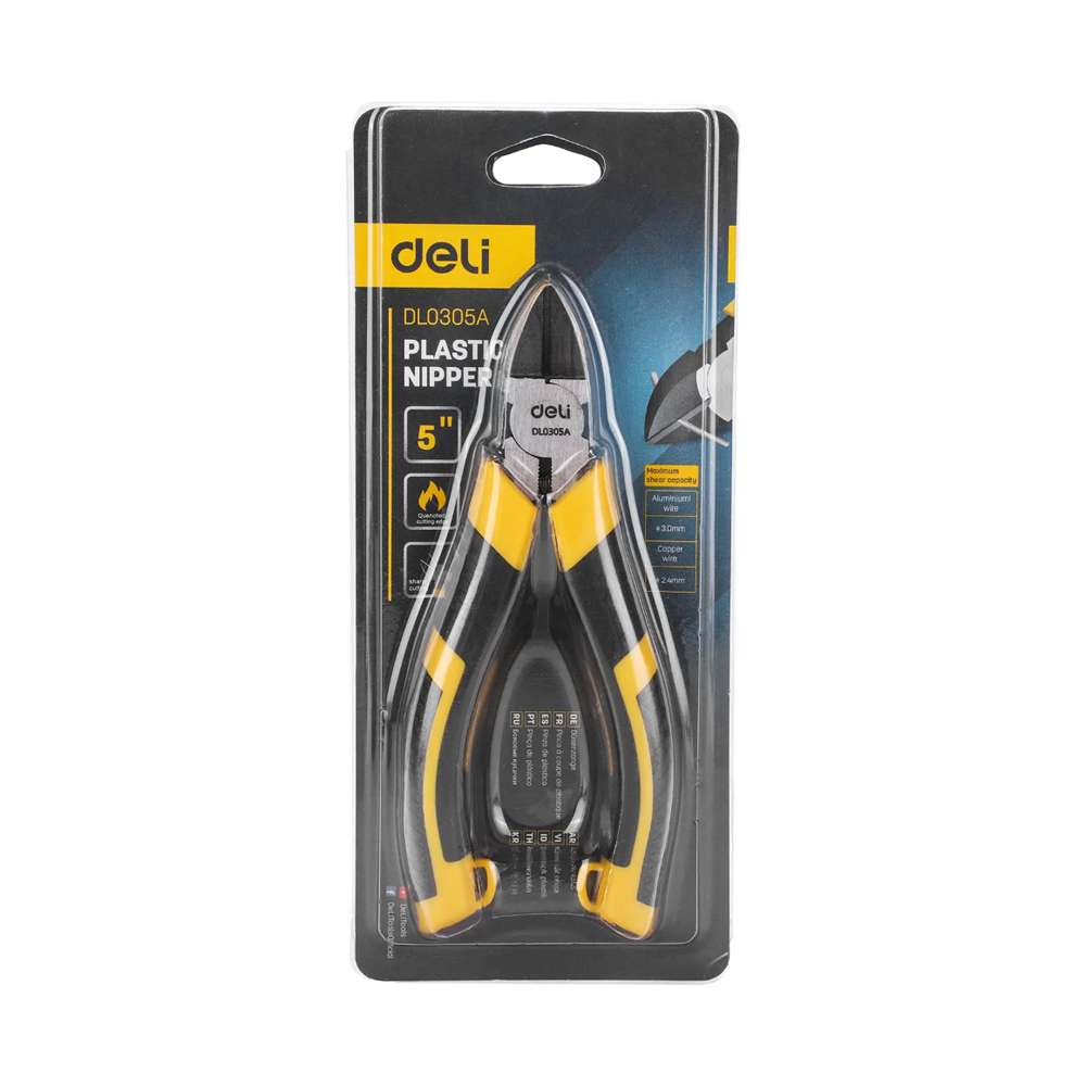 The Deli DE-EDL0305A cutting nippers 5" are compact nippers designed for precision flush cutting of soft wires, cable ties and plastic sprues. Their small size and fine jaws make them ideal for use in electronics, jewellery work and hobby projects where accuracy is important. The sharp cutting edges provide clean cuts with minimal deformation. These nippers are perfect for technicians and hobbyists who need reliable, precise cutting tools.