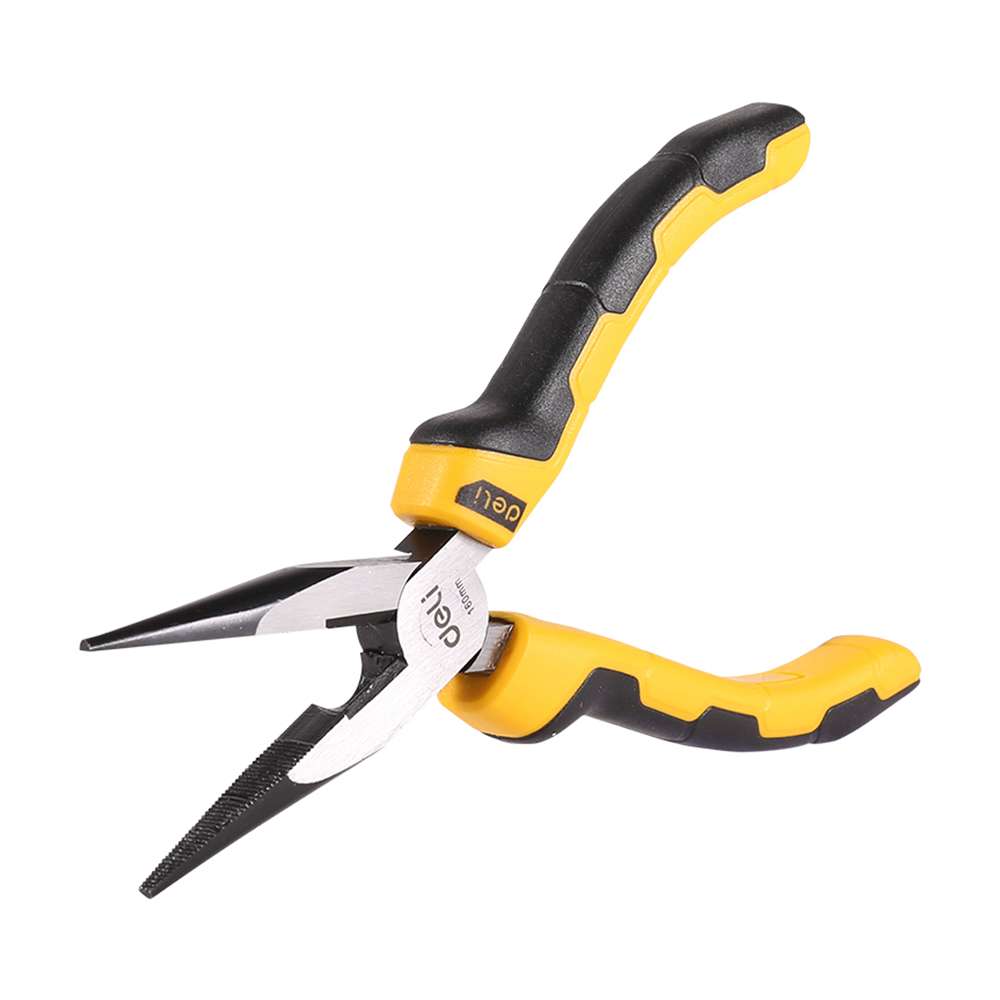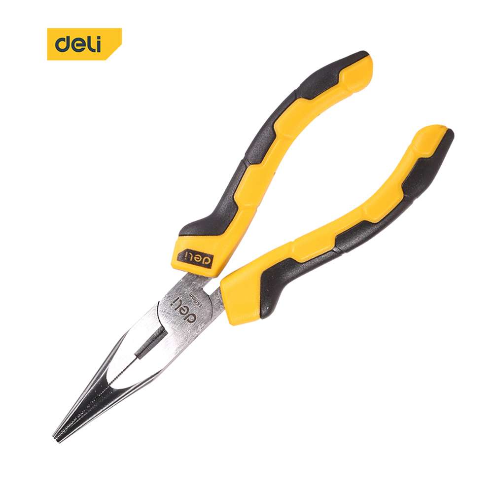 The Deli DE-EDL2106 long nose pliers 6" are compact pliers designed for precision gripping, bending and holding small components in tight spaces. The long, tapered jaws reach into confined areas where standard pliers cannot, making them ideal for electronics, electrical work and fine mechanical tasks. The serrated tips provide a secure grip, while integrated cutters can handle small wires. These pliers are perfect for technicians, electricians and hobbyists.