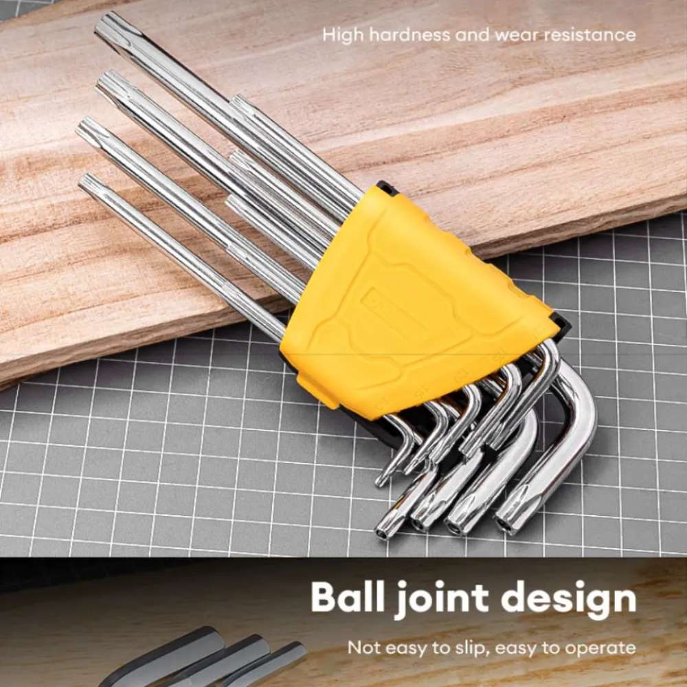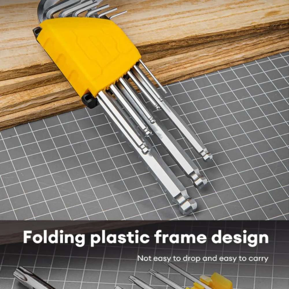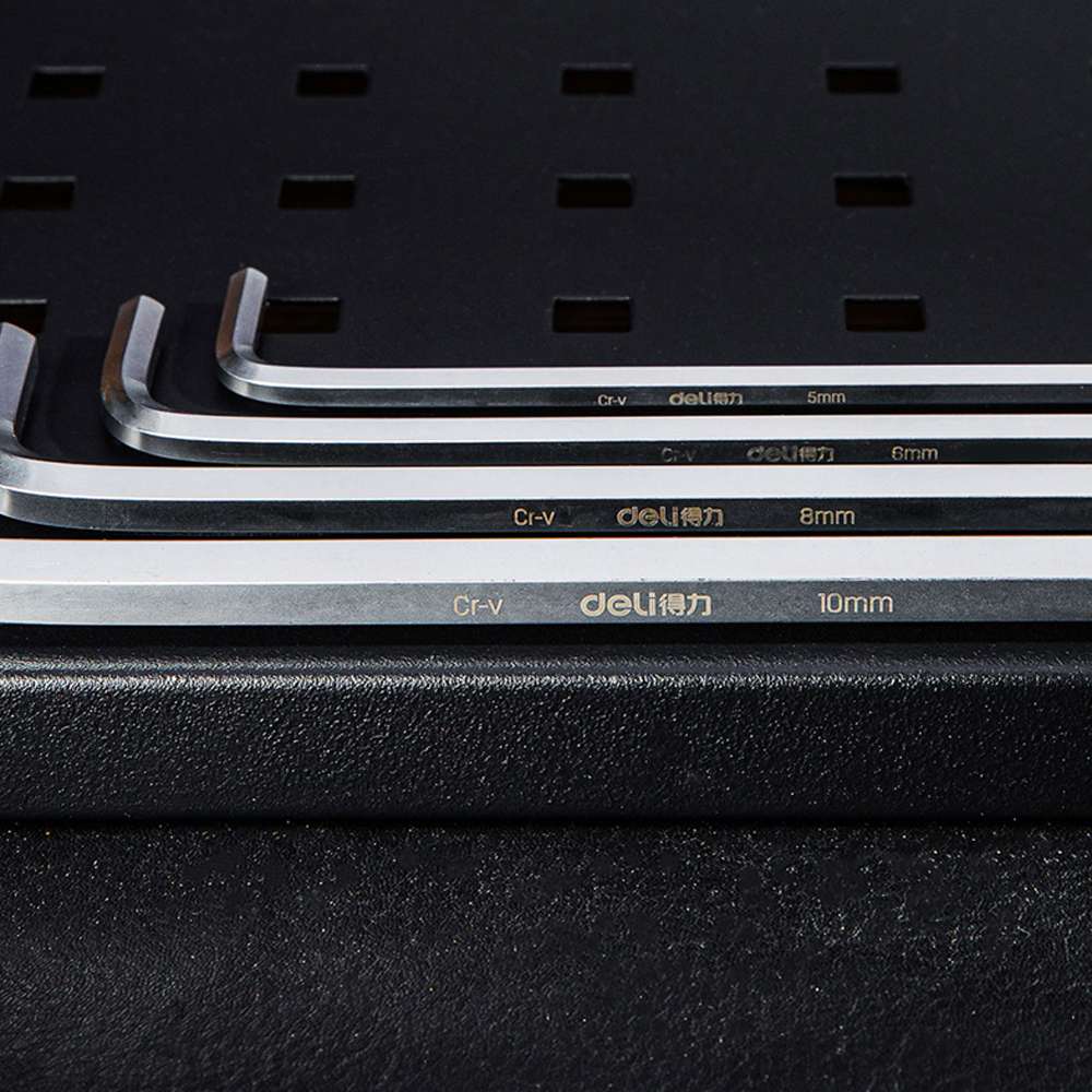 The Deli DE-EDL3590 hex key long, flat end 9pcs set consists of long-arm hex keys that provide extra reach and leverage for hard-to-access fasteners. The flat ends fit standard hex socket screws, and the long design allows use in deeper recesses. Supplied in a holder, the set is easy to store and transport. These hex keys are ideal for mechanics, maintenance technicians and furniture assembly.