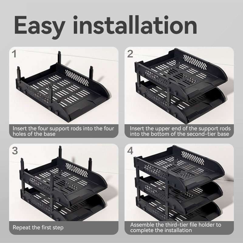 Deli delivers multi-tier trays for managing documents in schools, offices, and homes. The E9213 model includes 3 black tiers, providing ample space for sorting and storing papers.