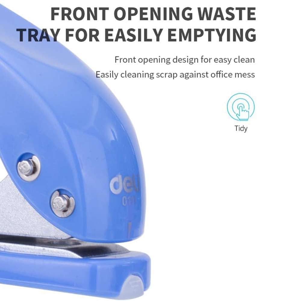The Deli mini single-hole punch (E0111) delivers clean, round holes for tickets, tags, and small document sets. A sturdy metal body, smooth spring action, and tidy chip catcher make on-the-go filing simple. Pocket-friendly size fits pouches, drawers, and classroom kits without clutter.