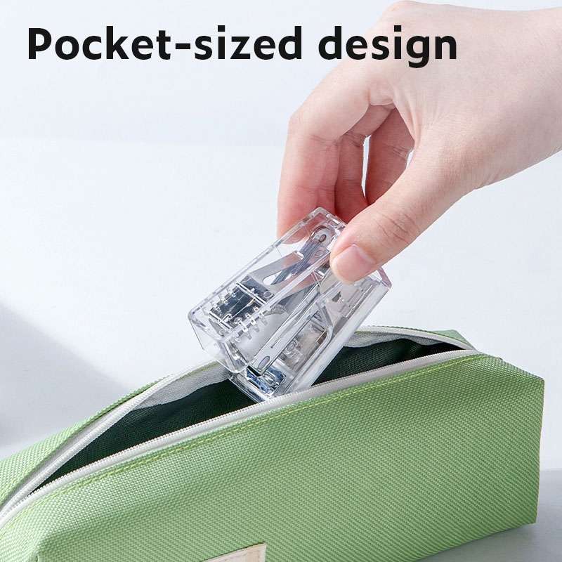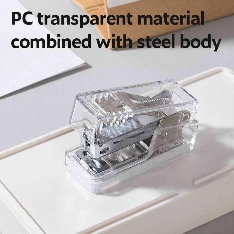 Nusign provides compact staplers for school, office, and personal use. Model ENS083F supports 12-sheet capacity, compatible with 24/6 and 26/6 staples, and features a clear body design.