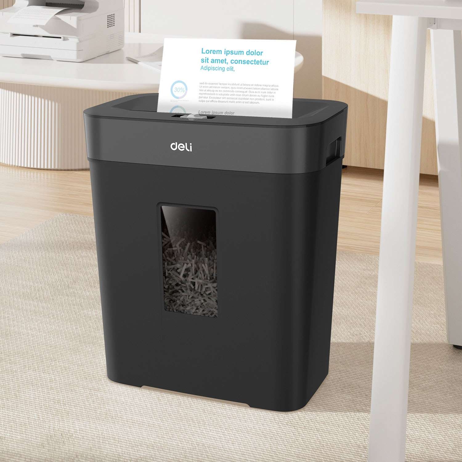 Deli delivers mid-size shredders for school, office, and home use. The ET023-BK model includes 15L bin capacity, 8-sheet performance, and sleek design, supporting users with secure document disposal.