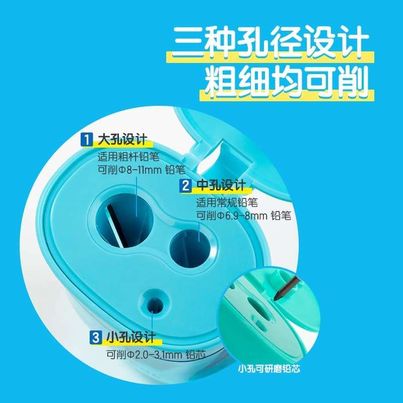 Deli offers multi-purpose sharpeners for versatile use in schools, homes, and offices. The VB156 model includes three sharpening holes, durable blades, and compact design, helping users sharpen pencils of different sizes with ease.