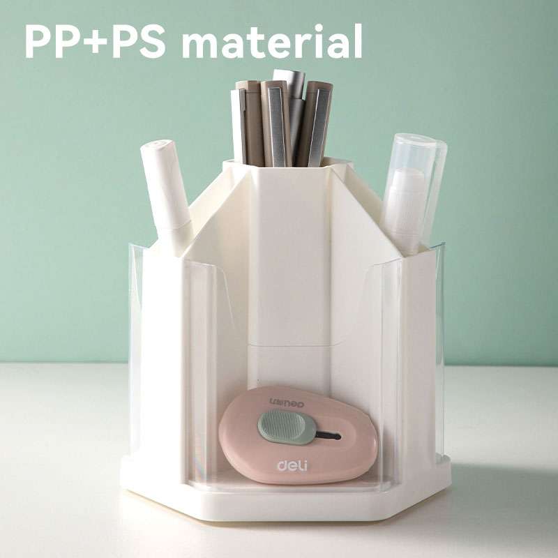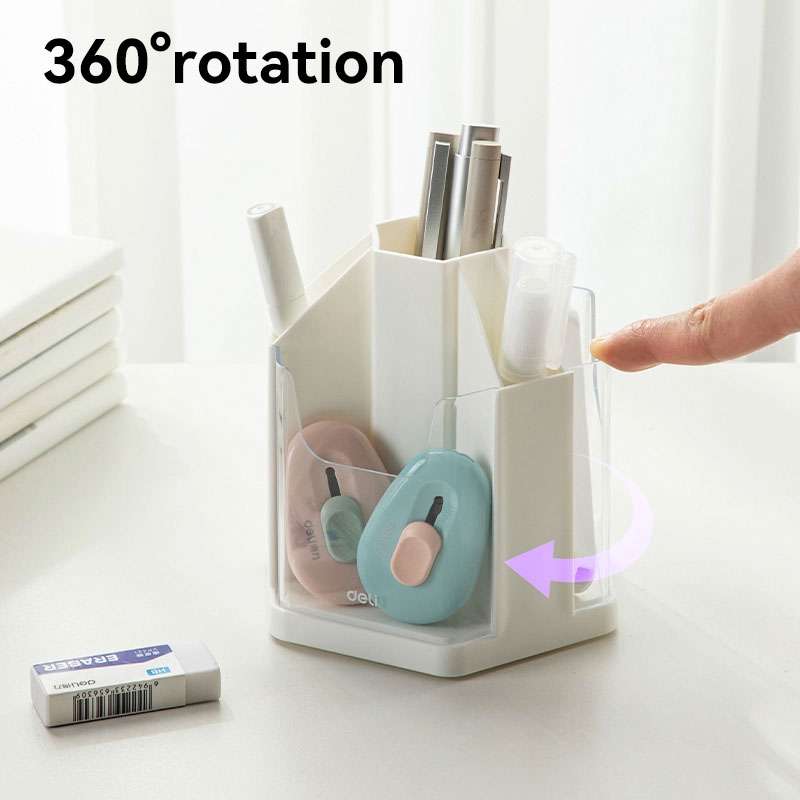 Deli introduces rotating pen holders for convenient access in offices, schools, and homes. The EM433 model features a white finish, sturdy design, and rotating base, helping users organize and access stationery quickly.