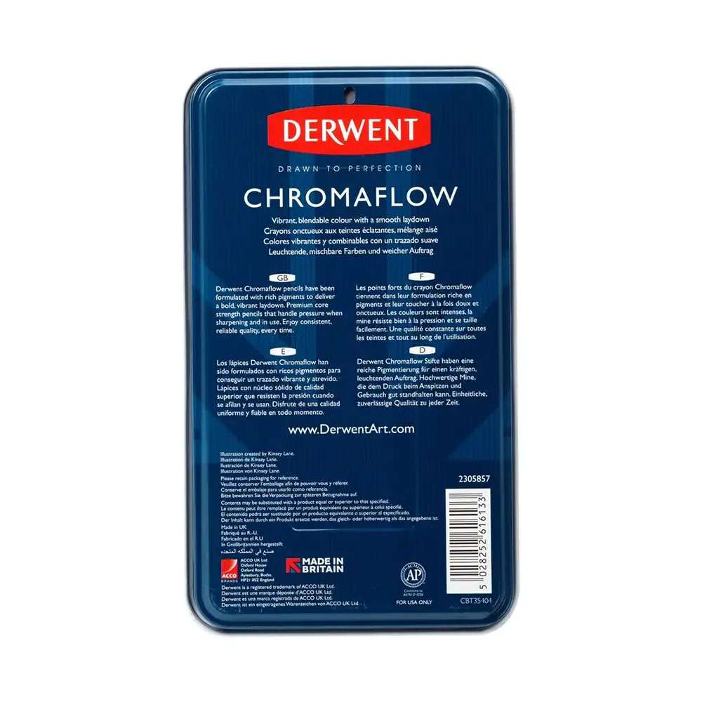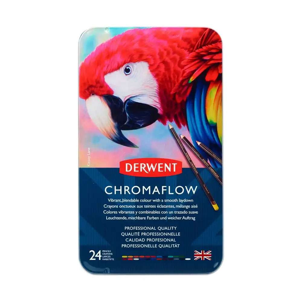Derwent Chromaflow Pencil Tin 24 (Model: RXL2305857) offers a compact, high-quality set of soft wax pencils that produce vivid, blendable colours. Ideal for both beginners and professionals exploring vibrant illustration work.