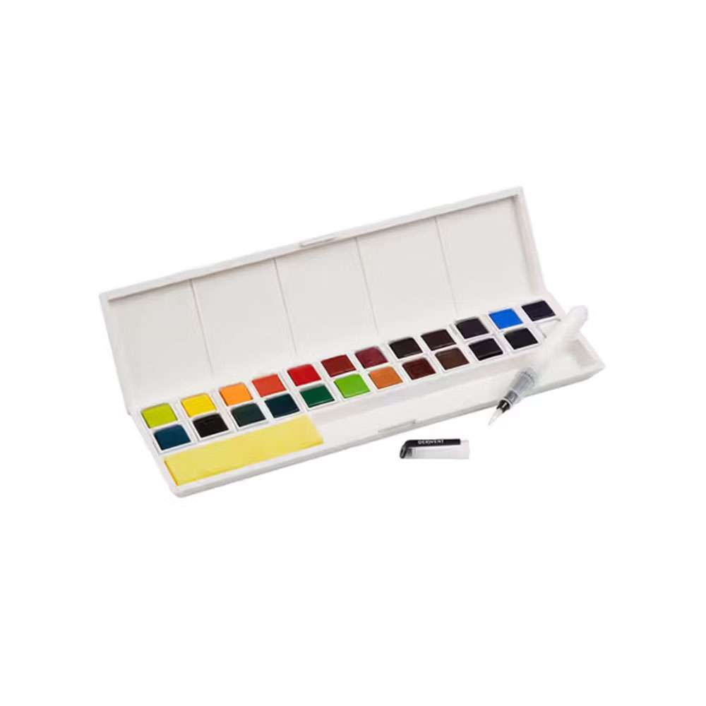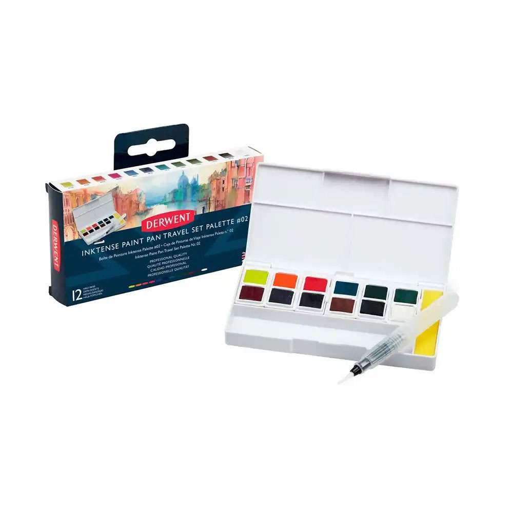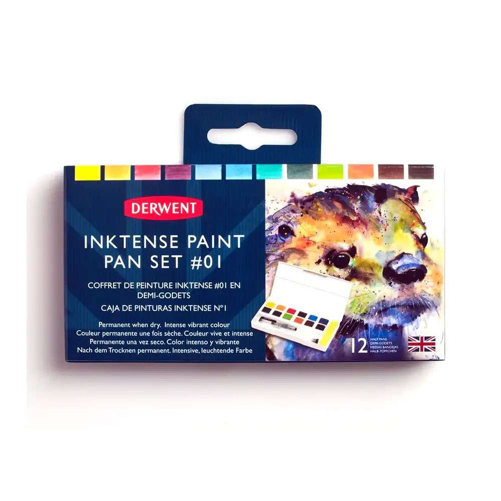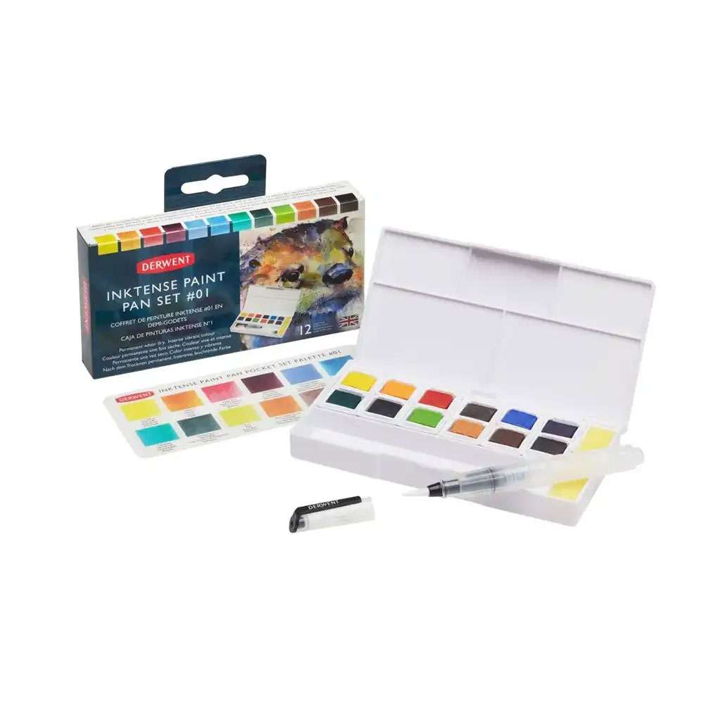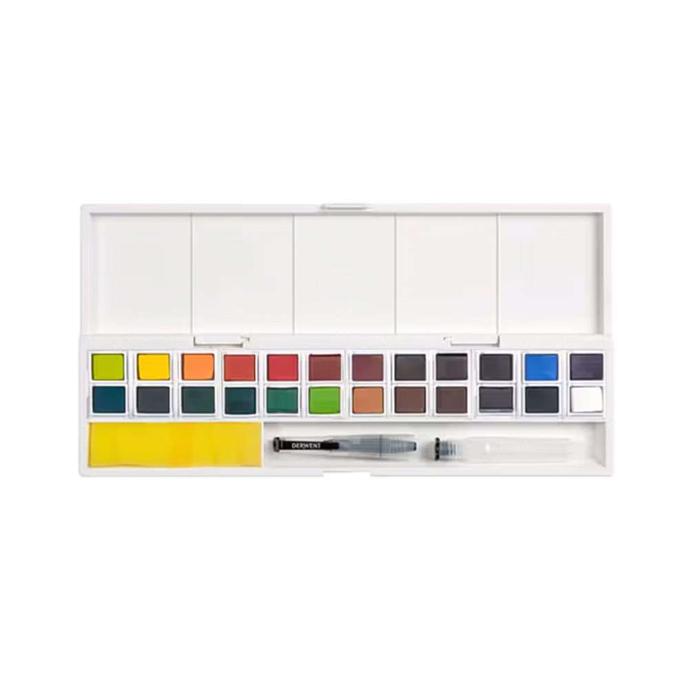 Derwent Inktense Paint Pan Set 24 (Model: RXL2305545) brings the brilliance of Inktense pigments in a portable palette. Each colour dries permanently, allowing clean overlays and vibrant finishes.