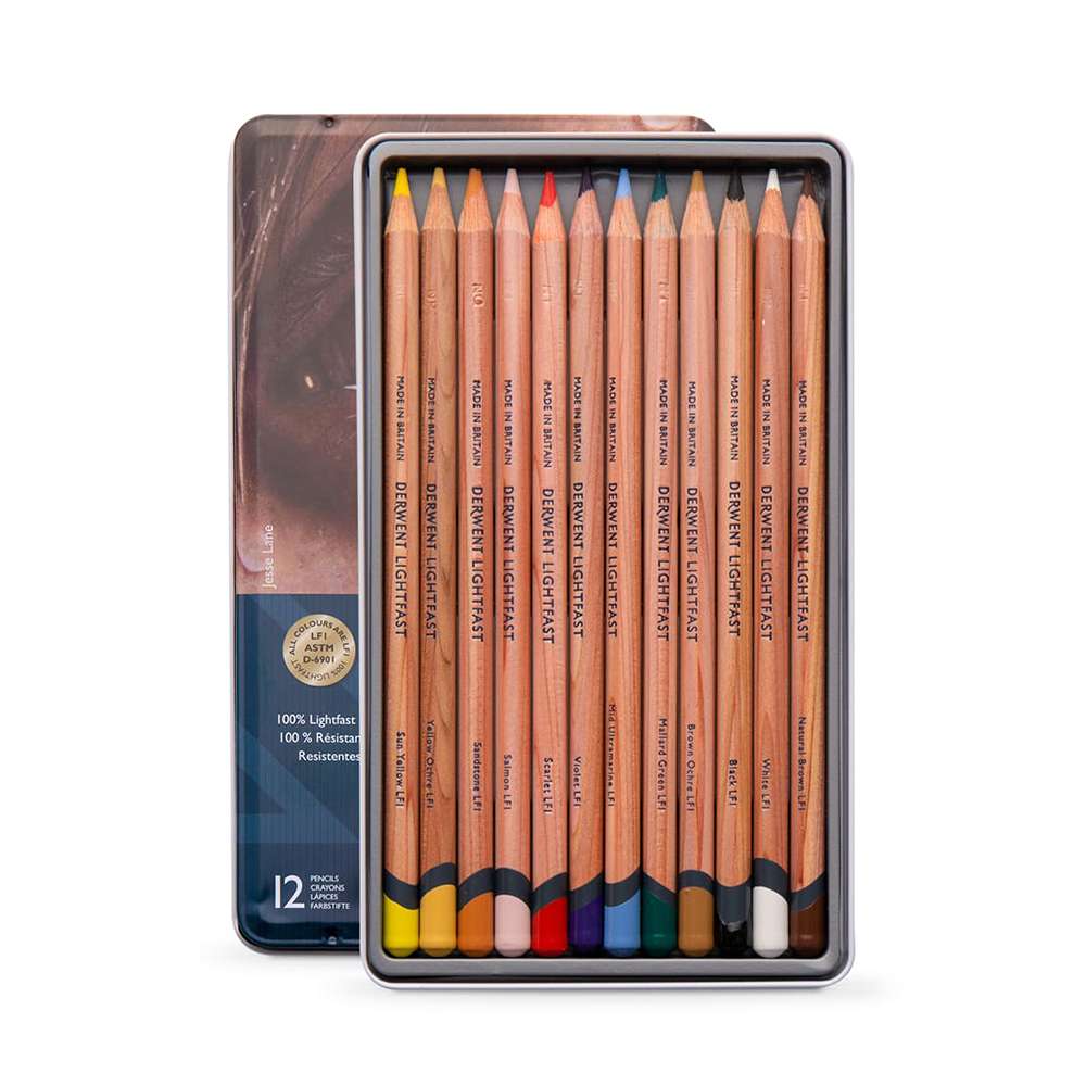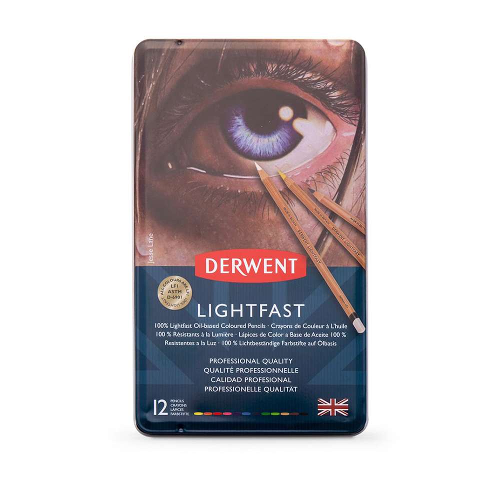 Derwent Lightfast Pencil Tin 12 (Model: RXL2302719) features professional-grade oil-based pencils that are fully lightfast, ensuring colours remain vibrant for over 100 years. Designed for fine artists demanding permanence and precision.