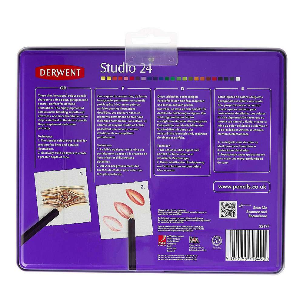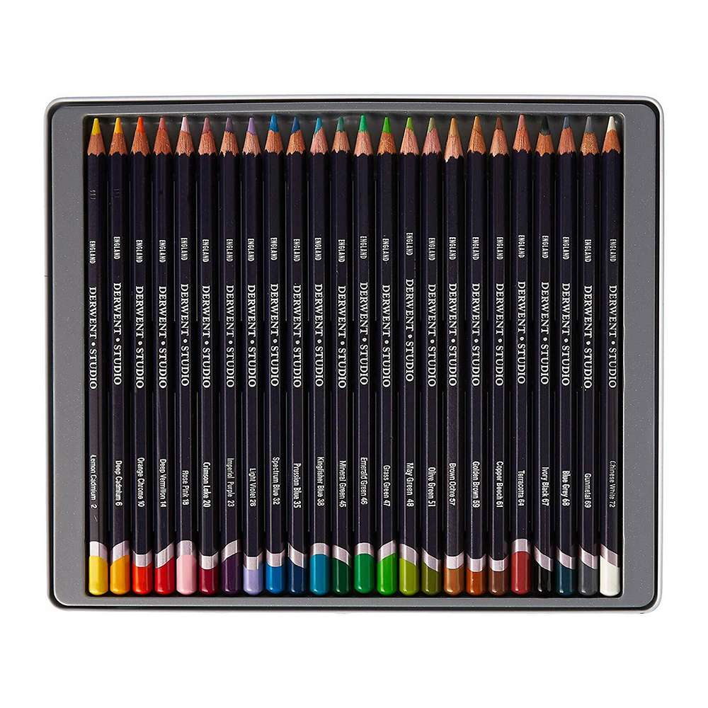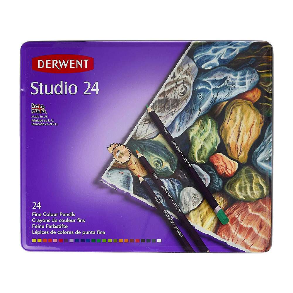 Derwent Studio Pencil Tin 24 (Model: RXL32197) provides finely pointed pencils for technical illustrations, fine detailing, and professional design work. Their firm texture offers smooth control and consistent performance.