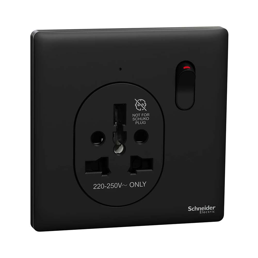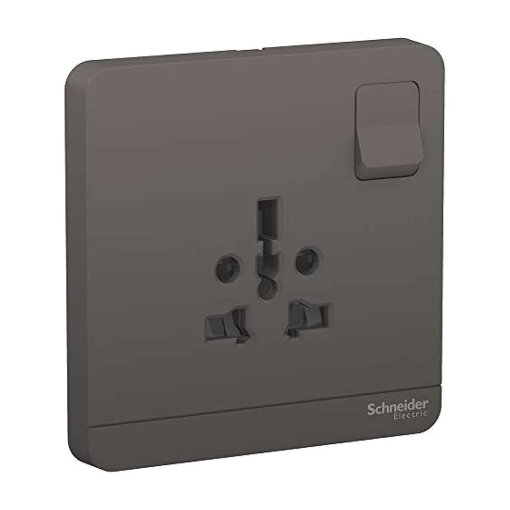 Schneider Electric AvatarOn International Socket, 16A 250V, 1-Gang, Gives Premium Look, Suitable for Home & Office – Dark Grey
