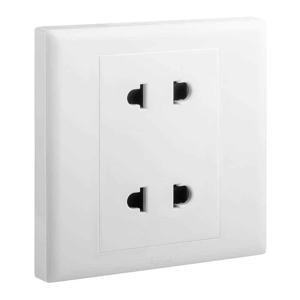 Legrand Eloe Dual Euro 2×2 Pin Socket, 1-Gang, Gives Premium Look, Suitable for Home & Office Use – White