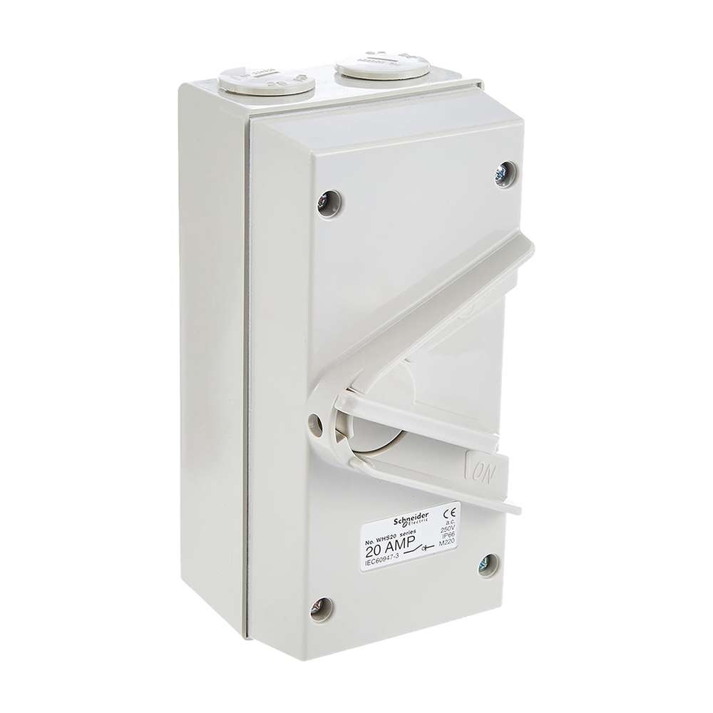 Schneider Electric Kavacha Isolating Switch, 20A 250V Single Pole, Compact Outdoor-Ready Isolation – Grey/White