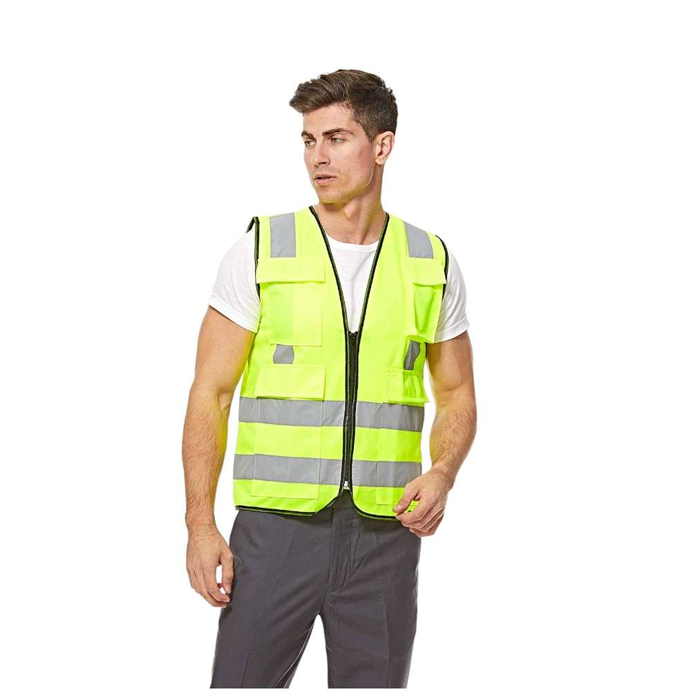 • Durable & lightweight high visibility safety vest.1. Stay safe and noticeable on the job with our Hi - Vis Safety Vest. Made from 100% polyester knit fabric, this vest is lightweight, breathable, and stands up to the demands of any challenging work environment. The fluorescent yellow and orange colors combined with 5cm normal light reflective tape ensure 360-degree visibility on the job site. The vest also features backside straight reflectives for extra safety. The zipper closure allows for easy wear and keeps the vest securely in place. With four pockets and a designated mobile pocket, you can have all your essential tools and devices within reach. Available in sizes S-4XL, this vest is designed to fit comfortably and suit all needs.