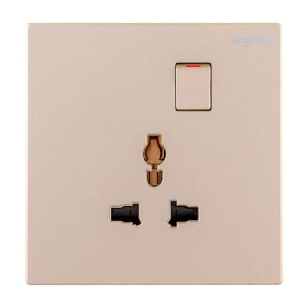 Legrand Mallia Senses Universal Switched Socket, 13A 250V, 1-Gang, Gives Premium Look, Suitable for Home & Office Use – Champagne