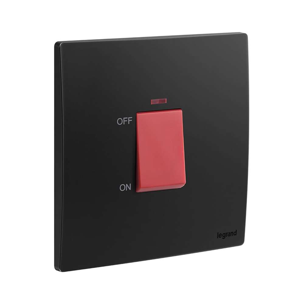 Legrand Mallia Senses DP Switch with LED, 45A (3×3), Clear Isolation for Heavier Loads, Suitable For Office & Home – Matt Black