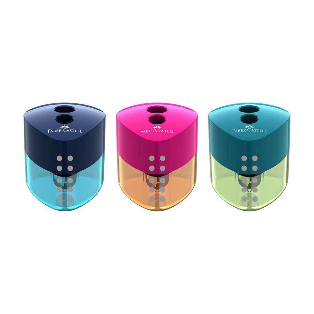 Faber-Castell provides a dual-size Grip sharpener for standard and jumbo pencils. The focus is on reliability, slip-free handling, and clean shavings, helping classrooms and studios sharpen multiple formats daily. Model FCC183196 features ergonomic grip dots.