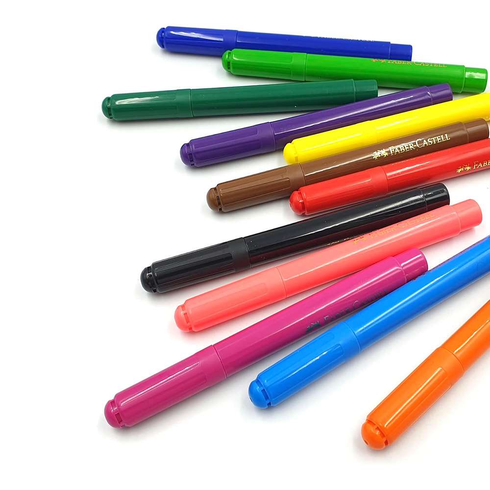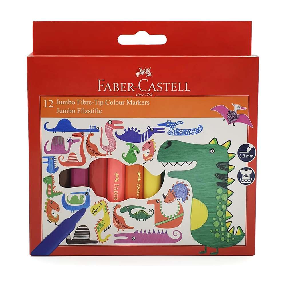 Faber-Castell provides jumbo fibre-tips for young artists at home and school. The focus is on reliability, easy grip, and bright super-washable inks, helping kids cover large areas and practise control daily. Model FCIN559412 supplies 12 vivid colours in a sturdy wallet.