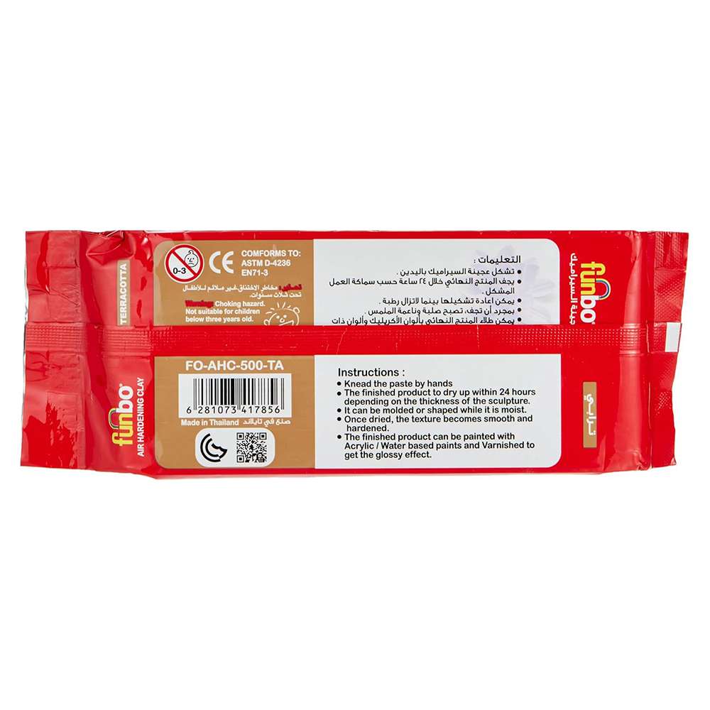 Funbo Air Hardening Clay (500g) in Terracotta is soft, easy to mold, and dries naturally without the need for baking. It's non-toxic, making it suitable for children and adults alike. Ideal for sculpting, modeling, and DIY crafts, this clay offers a natural finish and is perfect for both beginner and advanced artists.