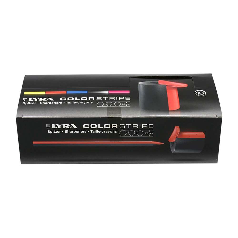 LYRA FIL0759 sharpener is made for Colorstripe pencils with an off-centre lead. The special slot sharpens cleanly without breaking cores. A handy tool for art classes using Colorstripe sets.