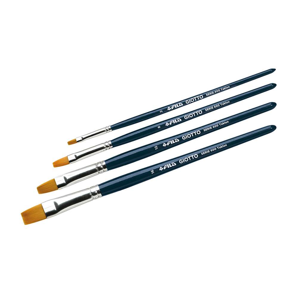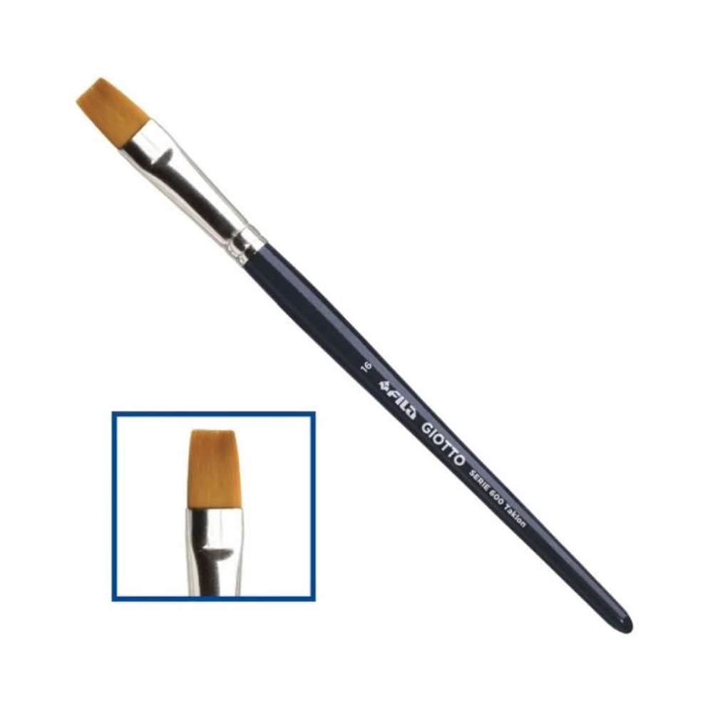 Giotto FIL0913 is a size 16 Taklon flat—the widest here—for fast coverage and big, readable titles. The fibre keeps strokes smooth; the flat edge helps keep borders straight. It’s suited to posters, backdrops, and display work with acrylic and poster paints.