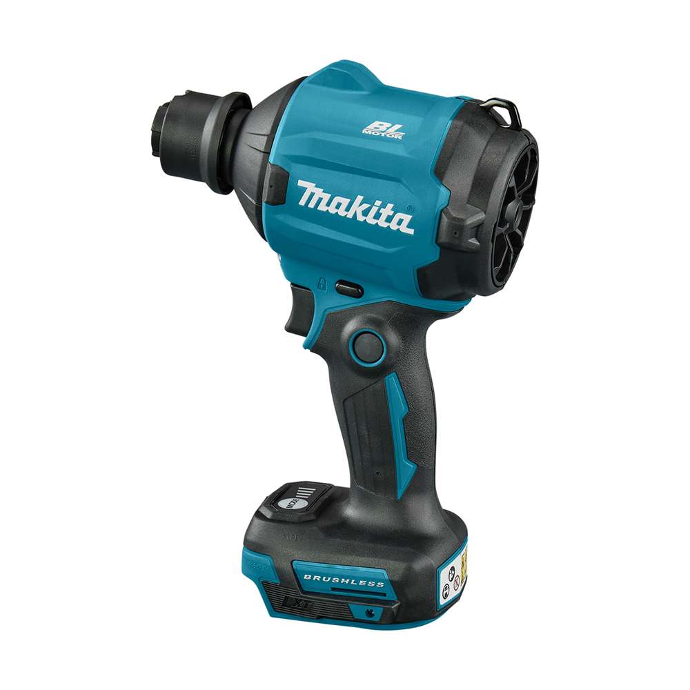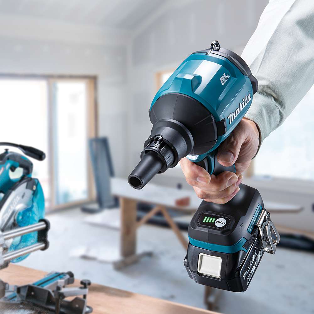 The Makita DAS180Z is a 18V cordless dust blower designed to clear dust and debris from job sites or workshops. With a powerful 18Kpa airflow and variable speed control, it provides optimal blowing performance. The compact and lightweight design ensures easy handling, while the ergonomically designed handle reduces operator fatigue. This dust blower is perfect for clearing dust from equipment, machinery, and work surfaces during construction or automotive maintenance tasks.