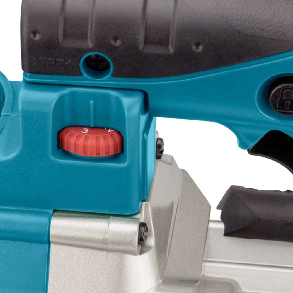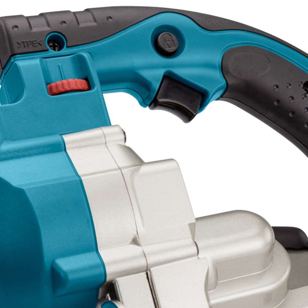 The Makita DPB180Z 120mm Cordless Portable Saw features a powerful 18V motor for smooth, precise metal cutting. Its lightweight, compact design enhances portability, while the variable speed control allows optimized cutting performance. The ergonomic grip ensures comfortable handling, and the tool-less blade change enables quick adjustments. Ideal for metal fabrication, plumbing, and electrical work, this cordless bandsaw delivers efficient, controlled cutting in a variety of job site applications.