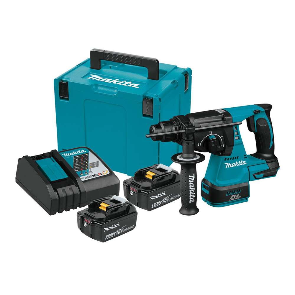 Includes 2 x 5,0 Ah batteries and a charger in a Makpac case.