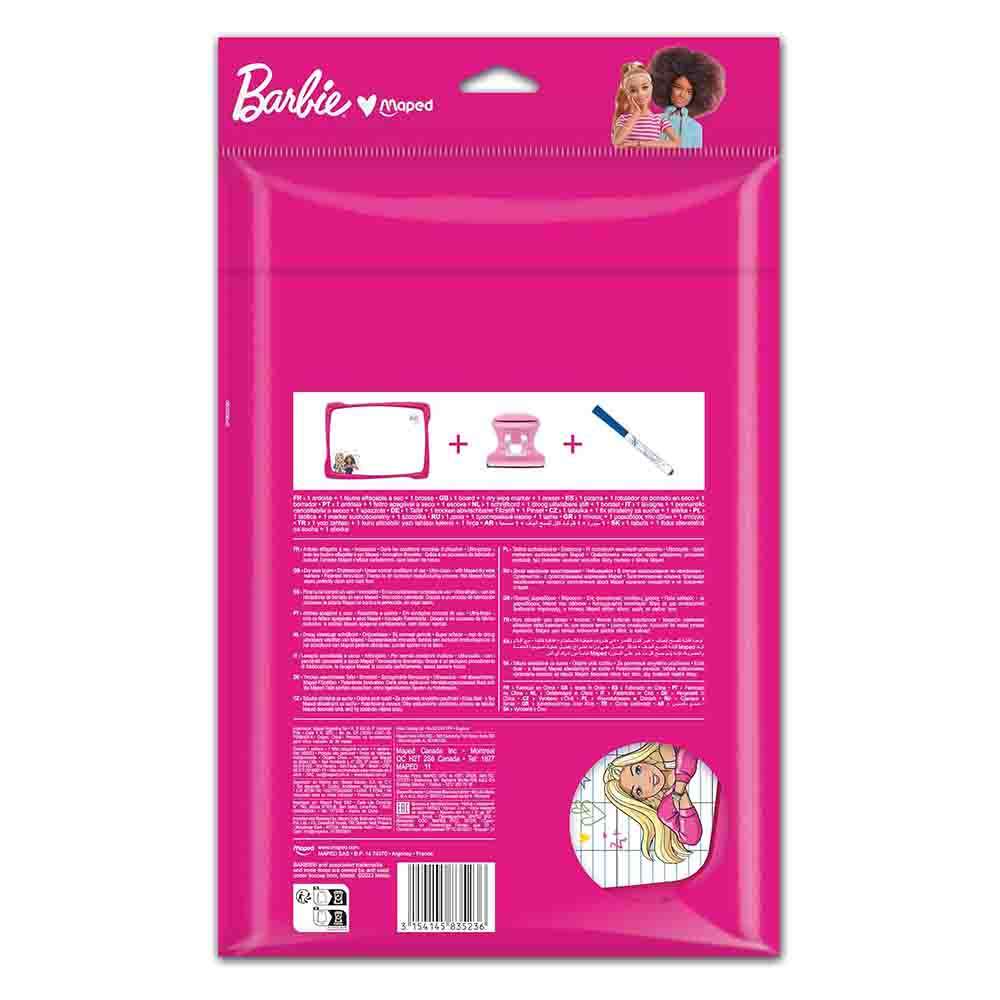 Maped provides kid-friendly whiteboard slates for home and school. Model MD-583523 is an unbreakable, double-sided Barbie-themed board with pen, eraser, and holder. The focus is on safety and ease, helping children practice writing, doodle, and learn every day.