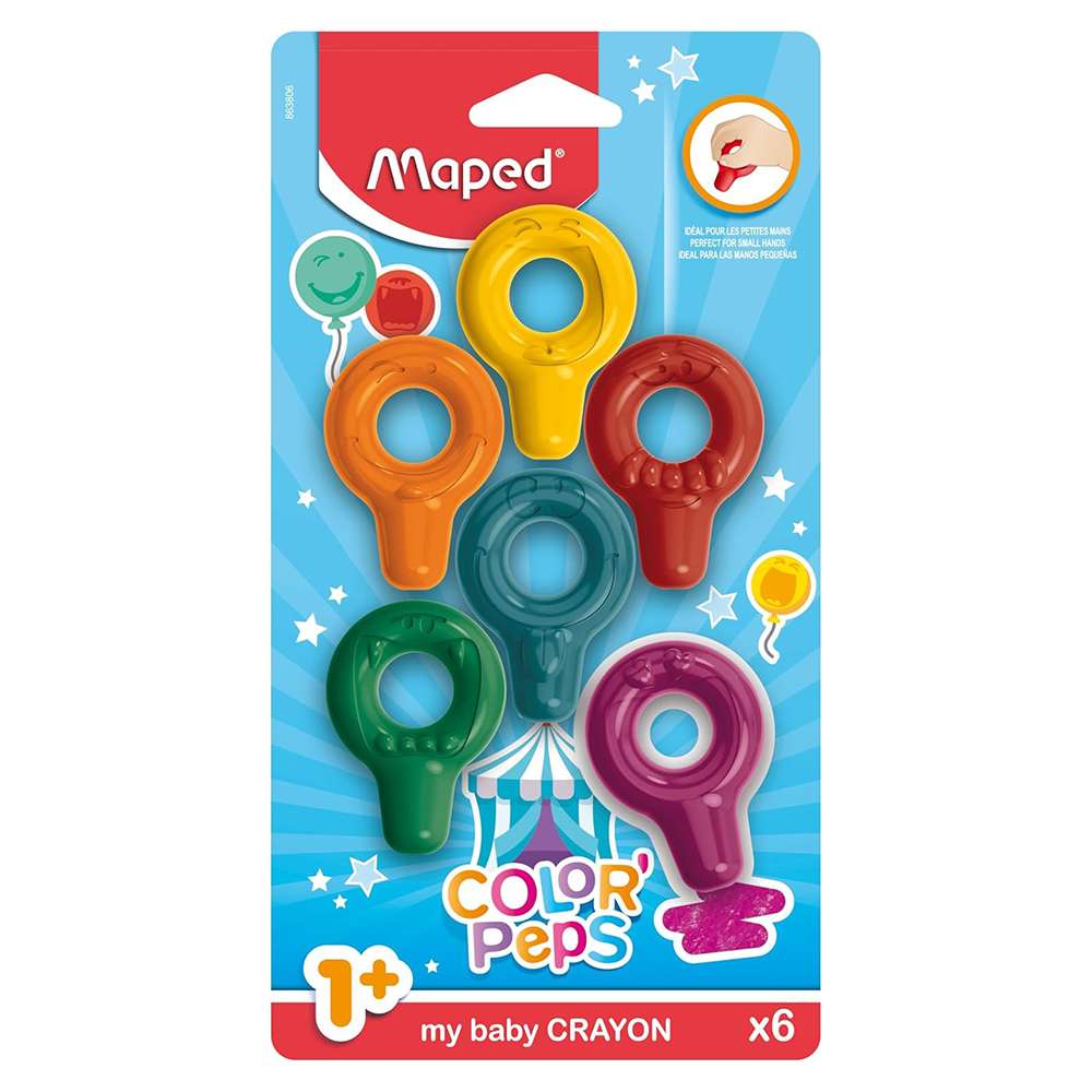 Maped provides the Early Age Baby Crayons, model MD-863806, in a Pack of 6 Colors. Designed for toddlers and young children, this set of crayons is ideal for introducing children to creative activities, offering smooth application and a comfortable grip for easy use.