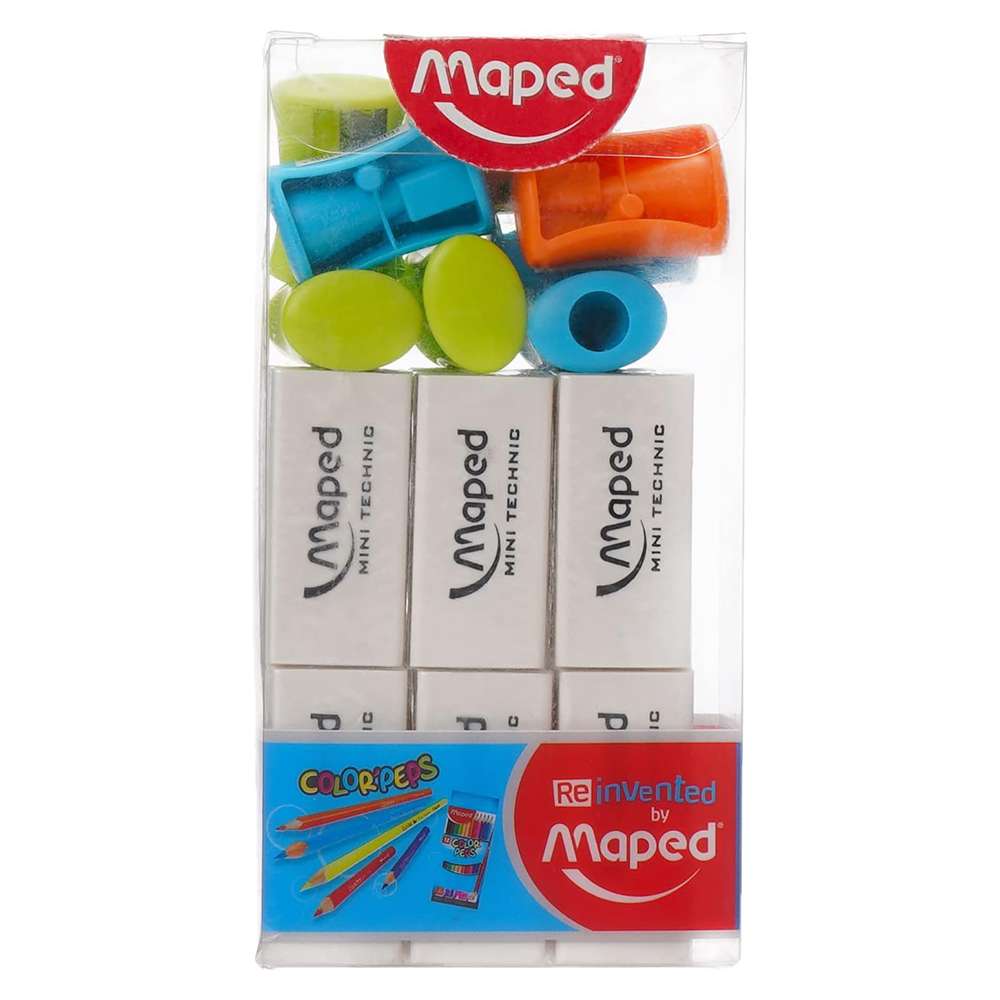 The Maped Technic 300 + Sharpener Set (Model: MDP-VP-041BT) is perfect for everyday school or office work. Its compact eraser delivers precise corrections, while the sharpener keeps pencils in perfect shape.