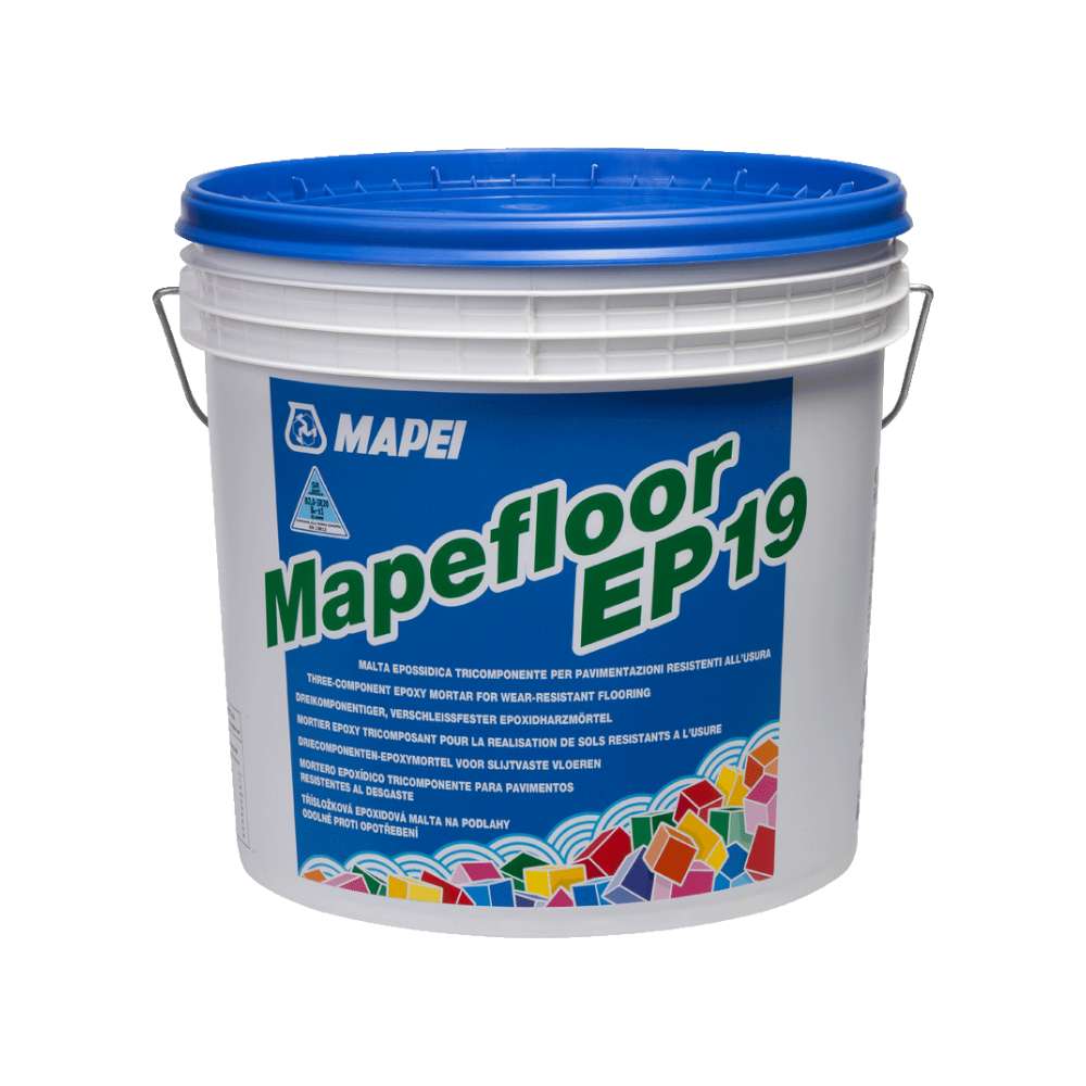 This 1.6 kg Mapefloor EP 19 component A is the epoxy resin base for a high-build, chemical-resistant floor coating system. When mixed with the hardener and filler components, it forms a thick, self-levelling epoxy layer suitable for industrial and commercial floors exposed to mechanical and chemical stress.