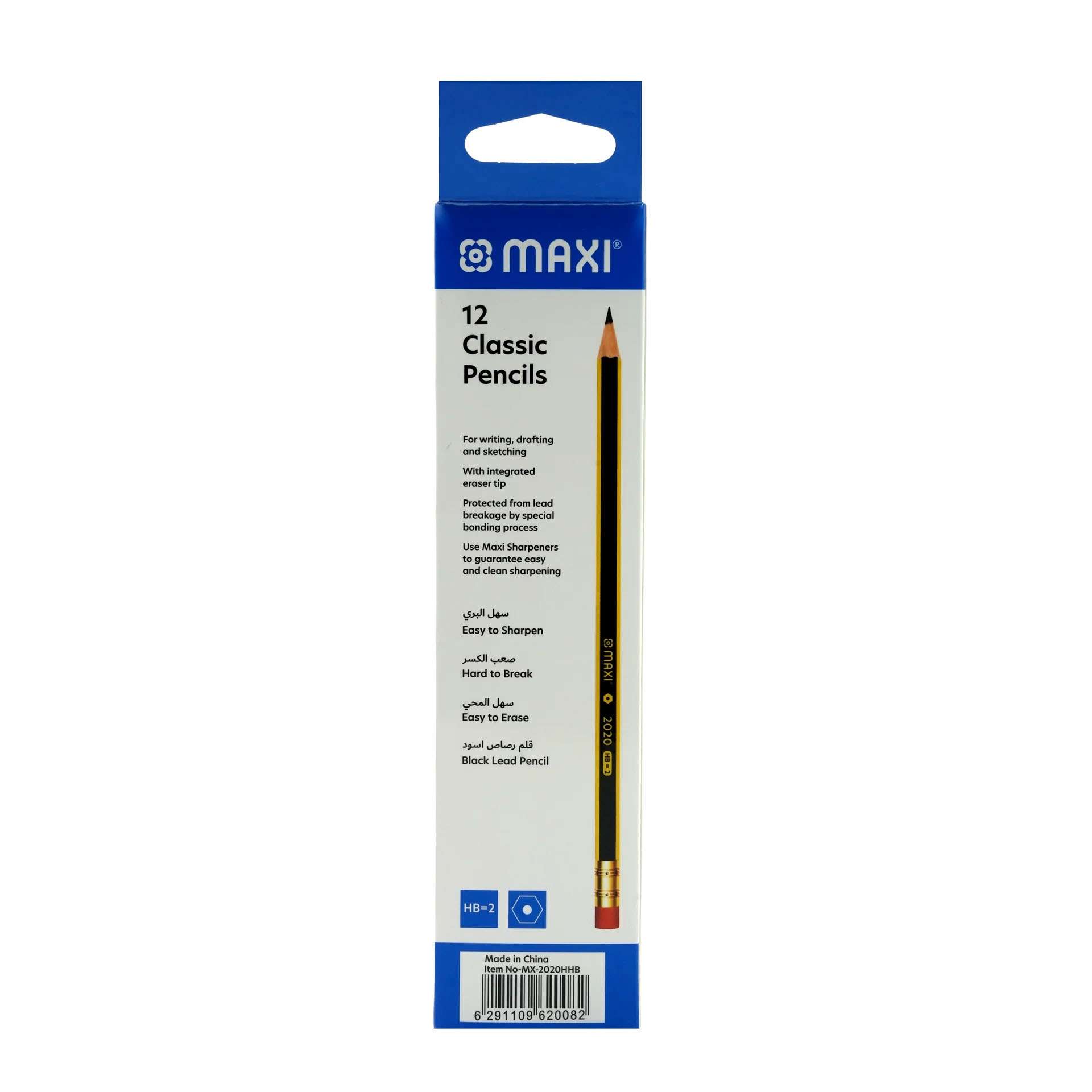 MAXI provides everyday HB pencils for classrooms, offices, and home use. The focus is on smooth cores, attached erasers, and comfortable hex barrels, helping users write neatly and correct quickly with the MX-2020HB boxed supply.