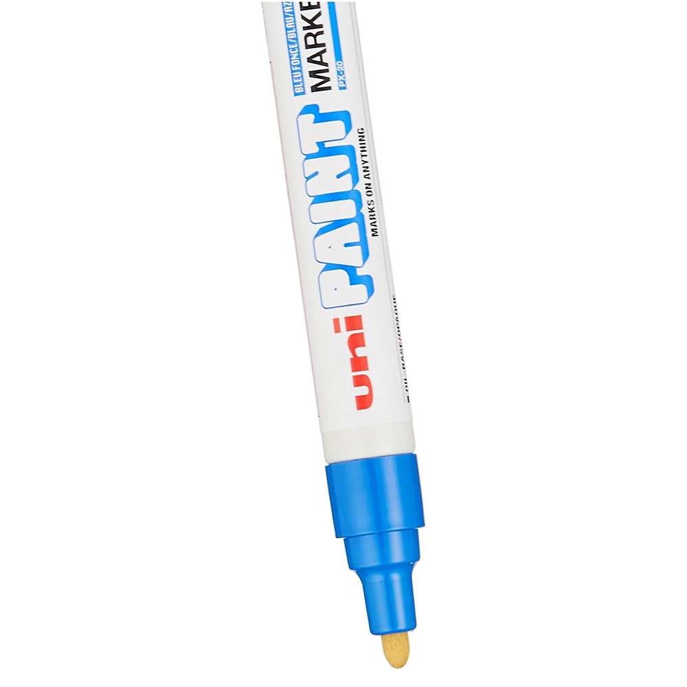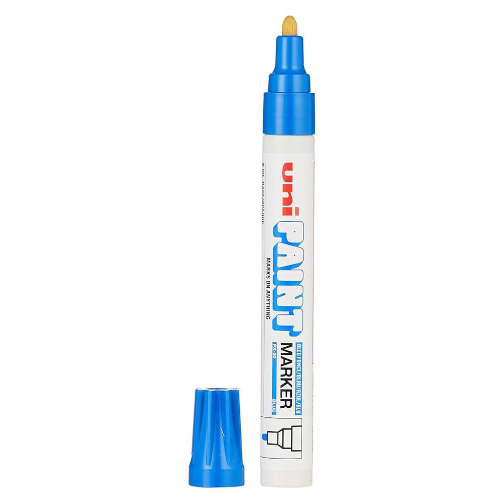 Add a bold touch to any surface with the Mitsubishi Uni PX-20 Blue Paint Marker. Featuring a bullet tip and rich, opaque ink, this permanent marker writes smoothly on metal, wood, plastic, stone, and more. Its fade-resistant, waterproof ink makes it perfect for outdoor labeling, signage, or DIY crafts. Trusted in industrial settings and by creative professionals, the PX-20 delivers vivid metallic color that stands out in any condition. Durable, reliable, and easy to use, it’s your go-to gold marker for all surfaces.