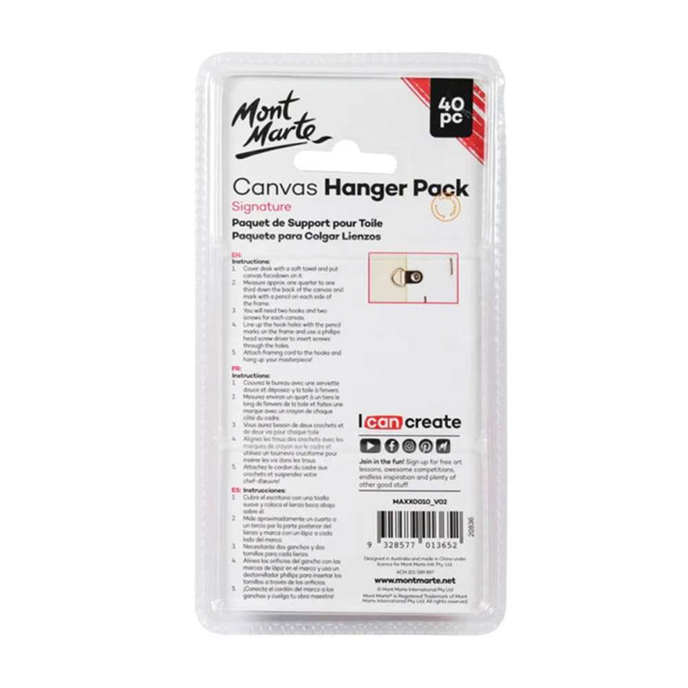 Mont Marte provides practical canvas hanger sets for easy artwork display. The MAXX0010 focuses on durability, simple installation, and secure hold, helping artists and decorators hang canvases and framed works effortlessly.
