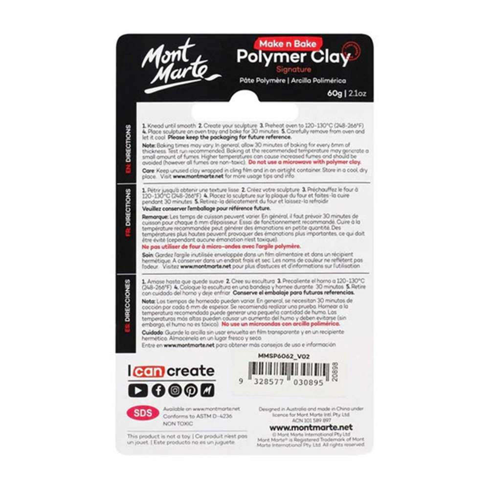 Mont Marte offers elegant polymer clay for decorative and artistic purposes. The MMSP6062 emphasizes shimmer finish, flexibility, and lasting strength, helping users design jewelry, accents, and art pieces every day.