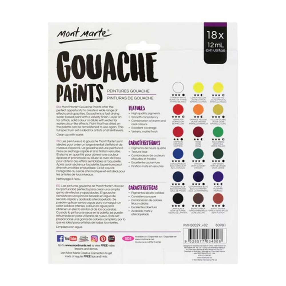 The Mont Marte Poster Paint Set 18x12ml (PMHS0029) offers 18 assorted vibrant poster paints with a smooth flow, ideal for blending, layering, and classroom creativity.