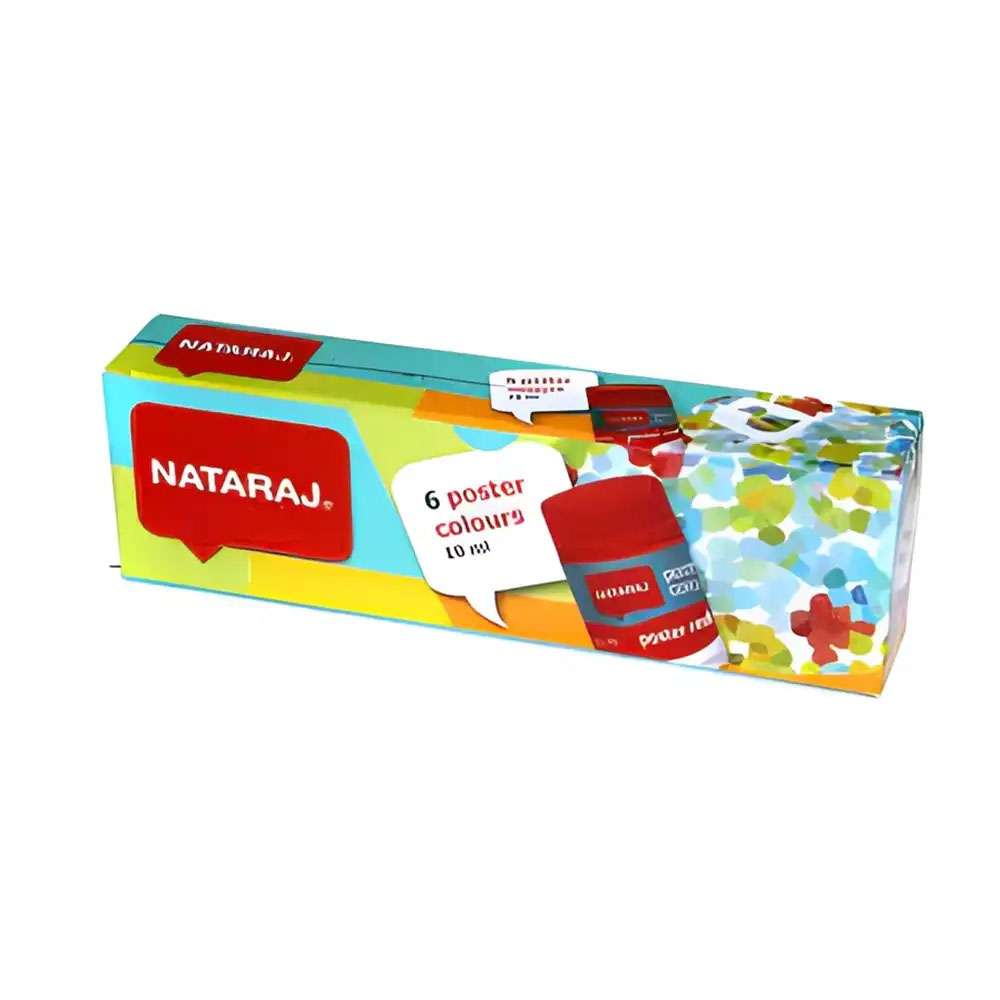 Nataraj acrylic colours (Model HP209775001) include 6 assorted shades in 10ml tubes with a free palette, packed in a plastic box. Suitable for school and hobby painting.