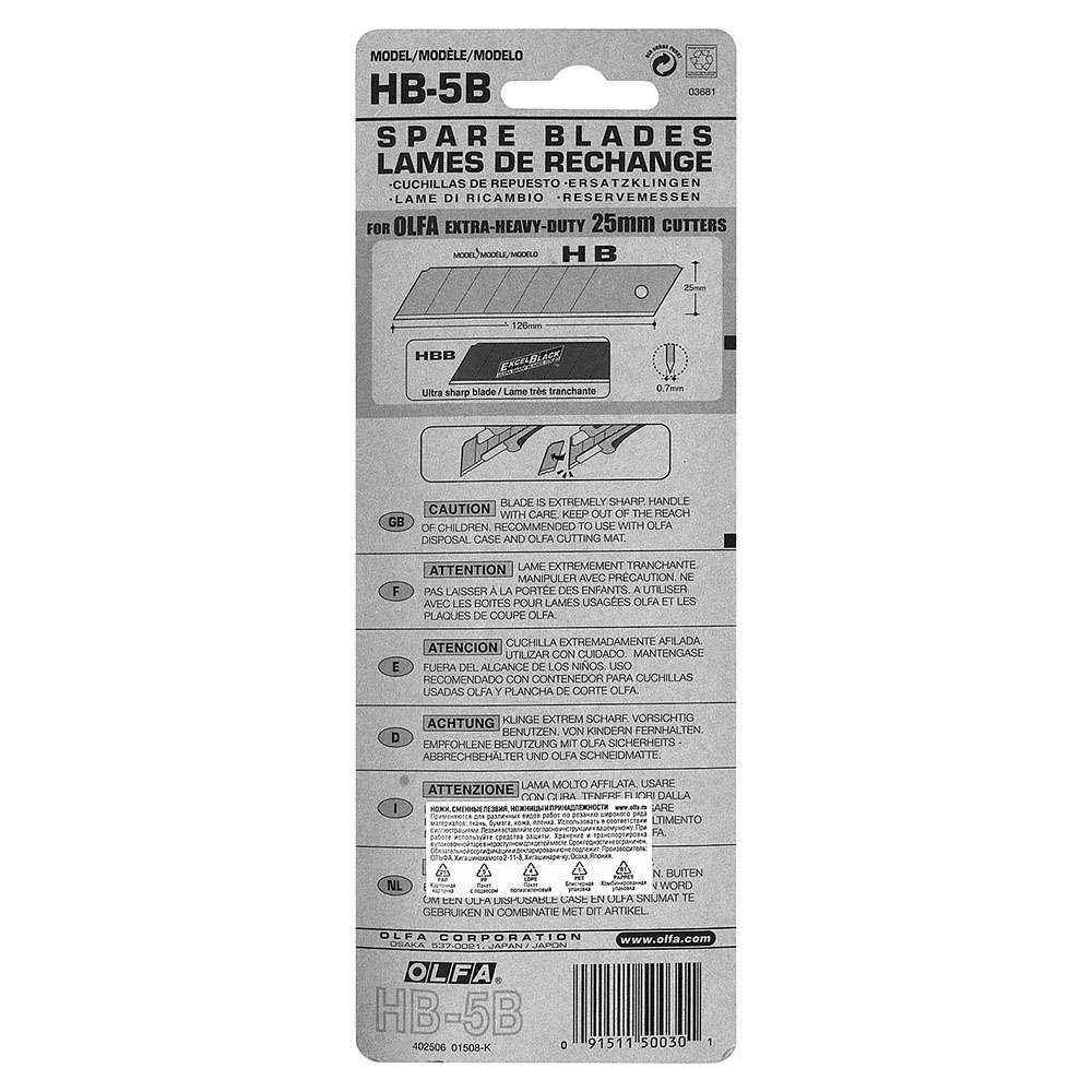 Olfa provides the OL-HB-5B Heavy-Duty Spare Blade for H-1 Cutter for heavy-duty industrial use. The focus is on long-lasting sharpness, toughness, and reliable performance, helping users with heavy-duty cutting tasks every day.